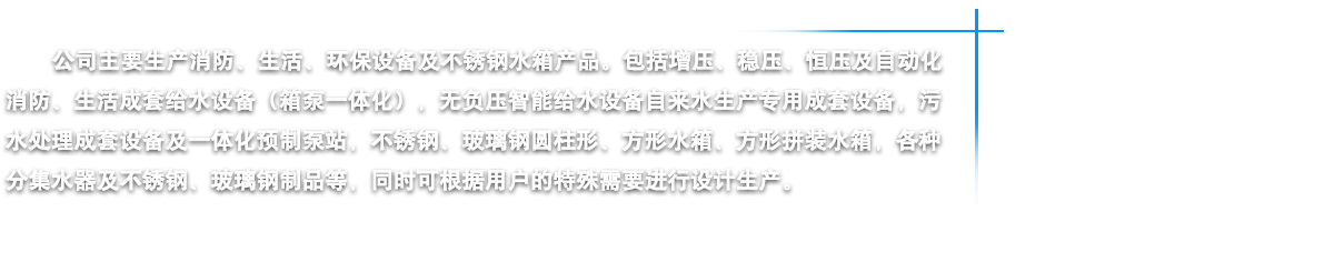 江蘇燁達(dá)環(huán)保設(shè)備有限公司坐落在江蘇省鹽城市建湖縣城,東臨黃海之濱,背倚蘇北平原,處于長(zhǎng)三角經(jīng)濟(jì)一體化和江蘇沿海開(kāi)發(fā)兩個(gè)國(guó)家級(jí)戰(zhàn)略疊加區(qū)域內(nèi),素有“水鄉(xiāng)明珠”美稱(chēng)。我公司鑒定走“產(chǎn)、學(xué)、研”相結(jié)合的路子,是江蘇省供水設(shè)備行業(yè)的大型企業(yè)。公司以“一流的管理,一流的研發(fā)設(shè)計(jì),一流的質(zhì)量意識(shí),一流的售后服務(wù)”為宗旨,嚴(yán)格控制原材料質(zhì)素,講求“品質(zhì)是企業(yè)的生命力”的理念,嚴(yán)把質(zhì)量關(guān),從而為客戶提供優(yōu)質(zhì)的供水設(shè)備。公司主要生產(chǎn)消防、生活、環(huán)保設(shè)備及不銹鋼水箱四大類(lèi)產(chǎn)品。包括增壓、穩(wěn)壓、恒壓及自動(dòng)化消防、生活成套給水設(shè)備(箱泵一體化),無(wú)負(fù)壓智能給水設(shè)備自來(lái)水生產(chǎn)專(zhuān)用成套設(shè)備,污水處理成套設(shè)備及一體化預(yù)制泵站,不銹鋼、玻璃鋼圓柱形、方形水箱、方形拼裝水箱,各種分集水器及不銹鋼、玻璃鋼制品等,同時(shí)公司可根據(jù)用戶的特殊需要進(jìn)行設(shè)計(jì)生產(chǎn)。燁達(dá)人將以科學(xué)的管理、精湛的技術(shù)、可靠的質(zhì)量、優(yōu)良的品質(zhì)向社會(huì)各界服務(wù),我們始終坦誠(chéng)相見(jiàn),我們當(dāng)然走在最前面······ |